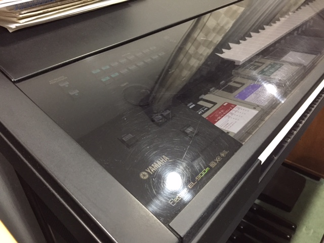 楽譜とか全部片して、フロッピーはおく場所がなかったので下鍵盤の上に…(笑